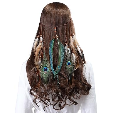 Awaytr Damen Hippie Boho Indianer Stirnband Feder Stirnbander Fur Abendkleider Halloween Karneval