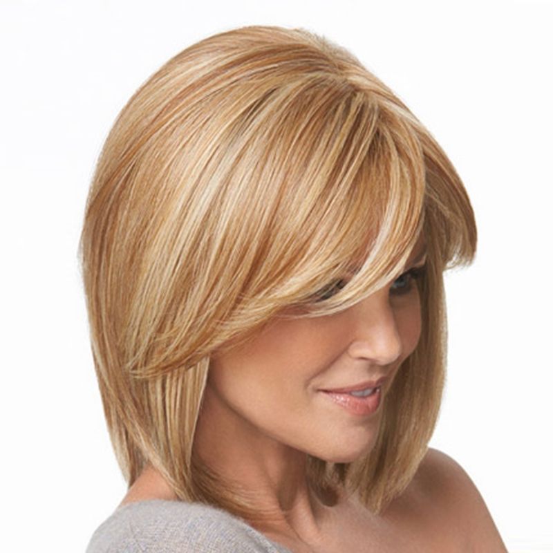 14inches Damenmode Perucke Blonde Mittellange Frisur Perucken Fur Frauen Gerade Synthetische Bob Perucke Mit Pony